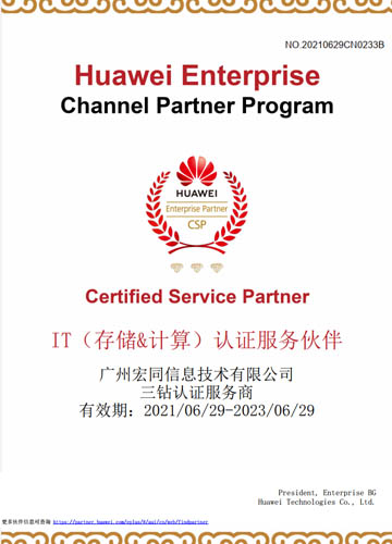 2021年成为华为金牌经销商,从产品到服务展开合作,“以客户为中心,以奋斗者为本”。